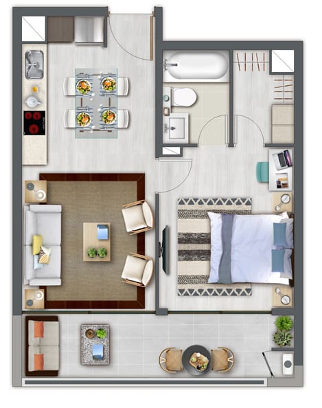 Olvida que tus muebles favoritos no quepan en tu departamento, nuestros living - comedor son bastante amplios para que no tengas que preocuparte por andar tropezándote con todo. Adicionalmente con cocinas integradas, americanas o tradicionales con logia independiente.