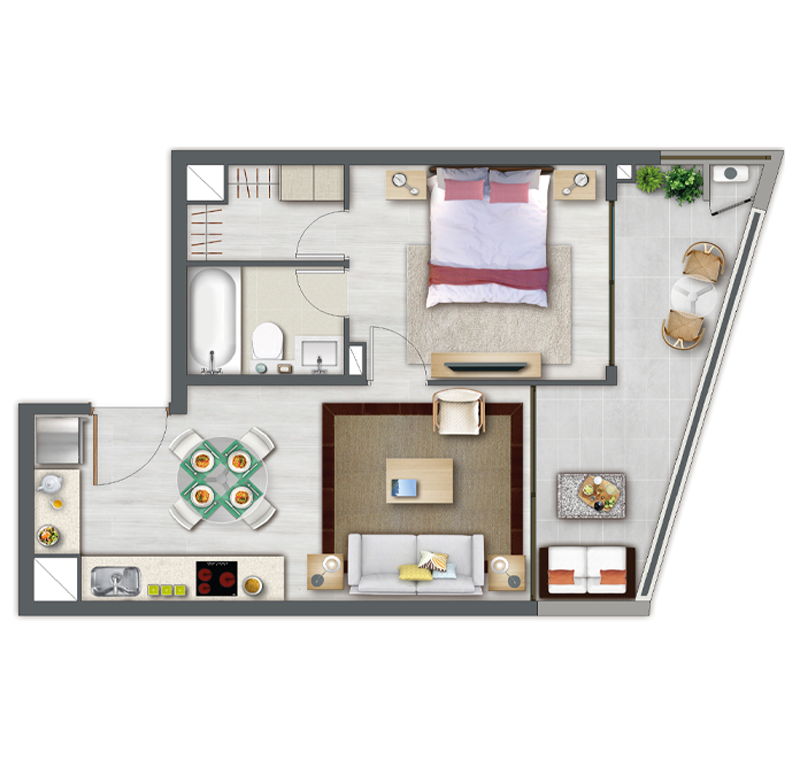 Normalmente asociamos vivir en el centro con vivir con poco espacio, no tiene porque ser siempre así. En Santa Victoria 99 encontrarás departamentos de 1 dormitorio de 48,9 m2 totales y hasta 99,7 m2 en su versión de 3 dormitorios, distribuidos en una arquitectura que privilegia la espacialidad con excelente distribución.